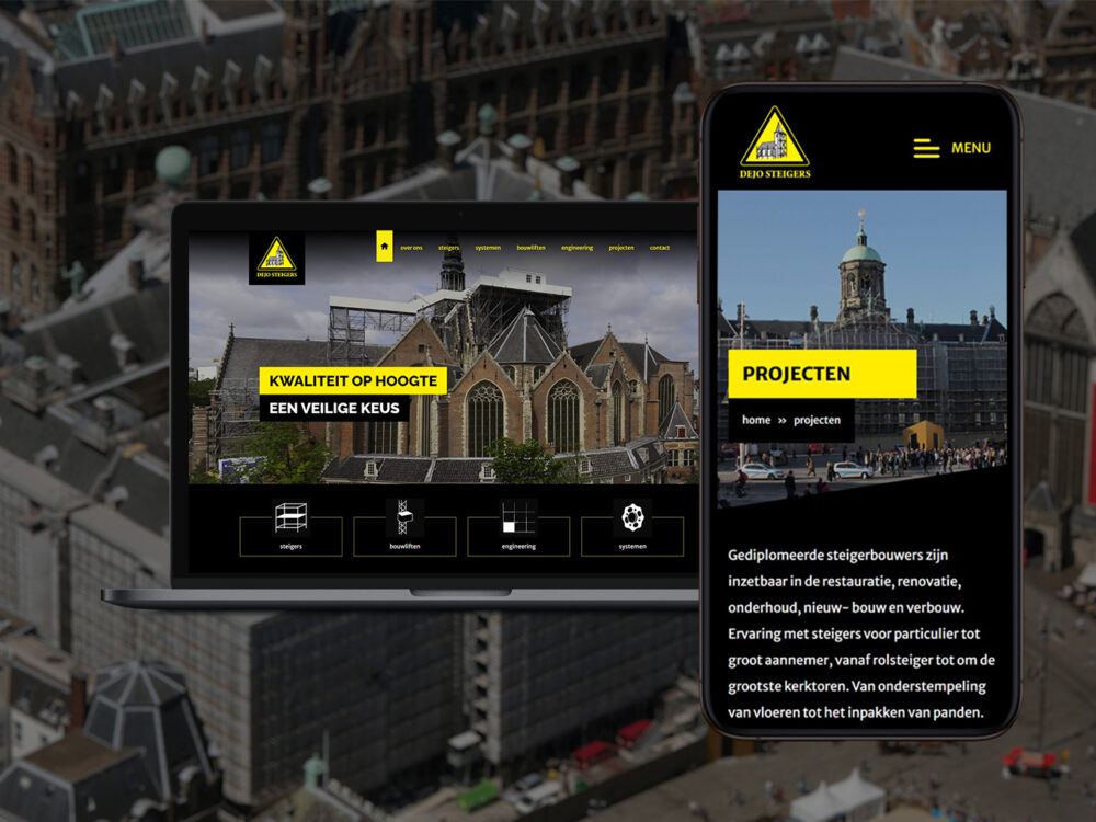 De ontwikkeling van een complete website voor Dejo Steigers. Uiteraard is de website responsive en door het unieke design straalt de website precies uit waar het bedrijf voor staat.